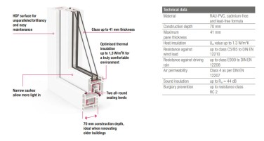 The GEALAN LINEAR profile is a 6-chamber system with a mounting depth of 70 mm, which helps minimize heat loss, ensuring a comfortable indoor climate and heating savings. With the ability to install double-glazed units up to 43 mm thick, you get excellent sound insulation—no unwanted noise in your home. The smooth surface of the profile, resistance to external influences, and a wide range of colors allow you to create a stylish window appearance that harmoniously fits any interior. An exclusive design is available: profile lamination in various colors and textures, stained glass, or decorative glazing. A wide selection of anti-burglary handles and hinge covers in different shades and styles.